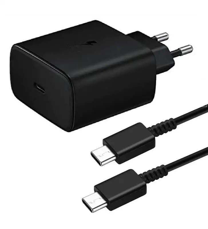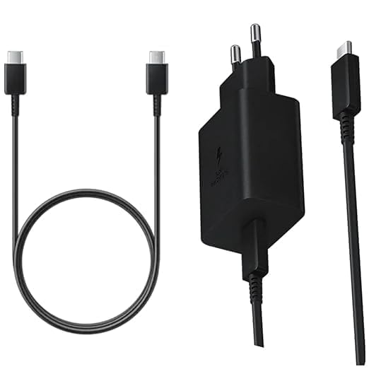 GHEREL Original Fast Charger 45Watts C to C Cable Compatible for Samsung | A55 / A35 / S8 / S9 Plus/Z Fold/Z Flip 5/4 – Black (Adapter & Cable)