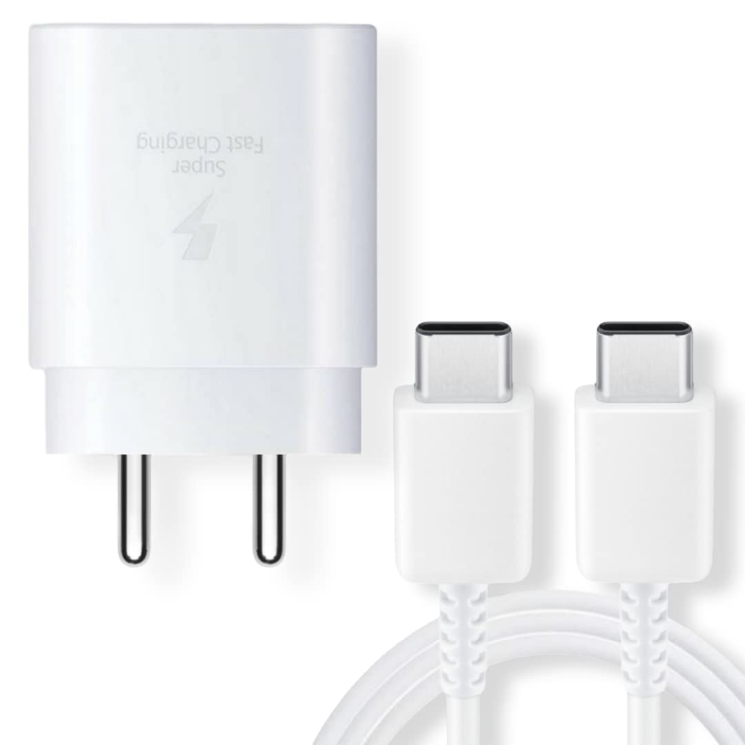SUSNWERE Original 25W USB-C Super Adapter with c to c Cable for Samsung Galaxy Quantum 2| A72| A52 5G| A52 |F62 |M62 (Adapter + Cable- White
